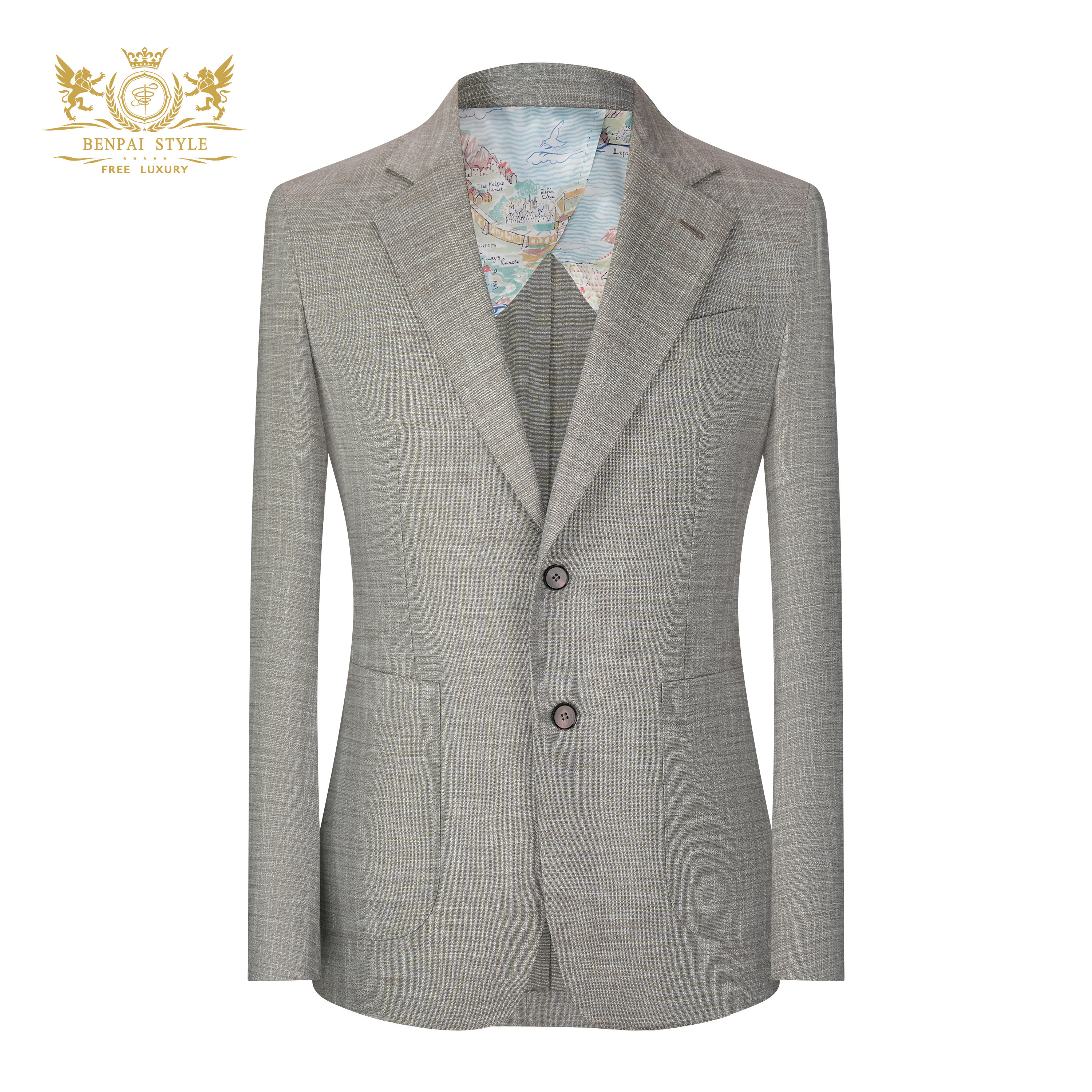 LEZORA 高定蓬松斜紋羊毛面料 眼鏡蛇扣平駁領西裝外套男