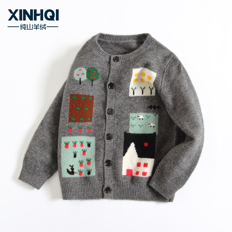 男童毛衣秋冬款兒童羊絨衫開衫外套卡通開襟M中小童寶寶男孩田園