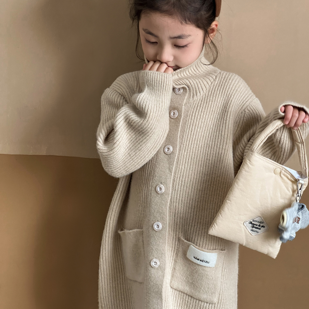 布丁哈魯2025春季新款女童百搭針織開衫毛衣字母刺繡溫婉文藝毛衣