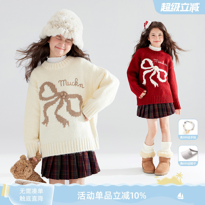 【圣誕蝴蝶酥】美麗奴羊毛混紡女童圣誕氛圍感圓領毛衣冬柔軟保暖