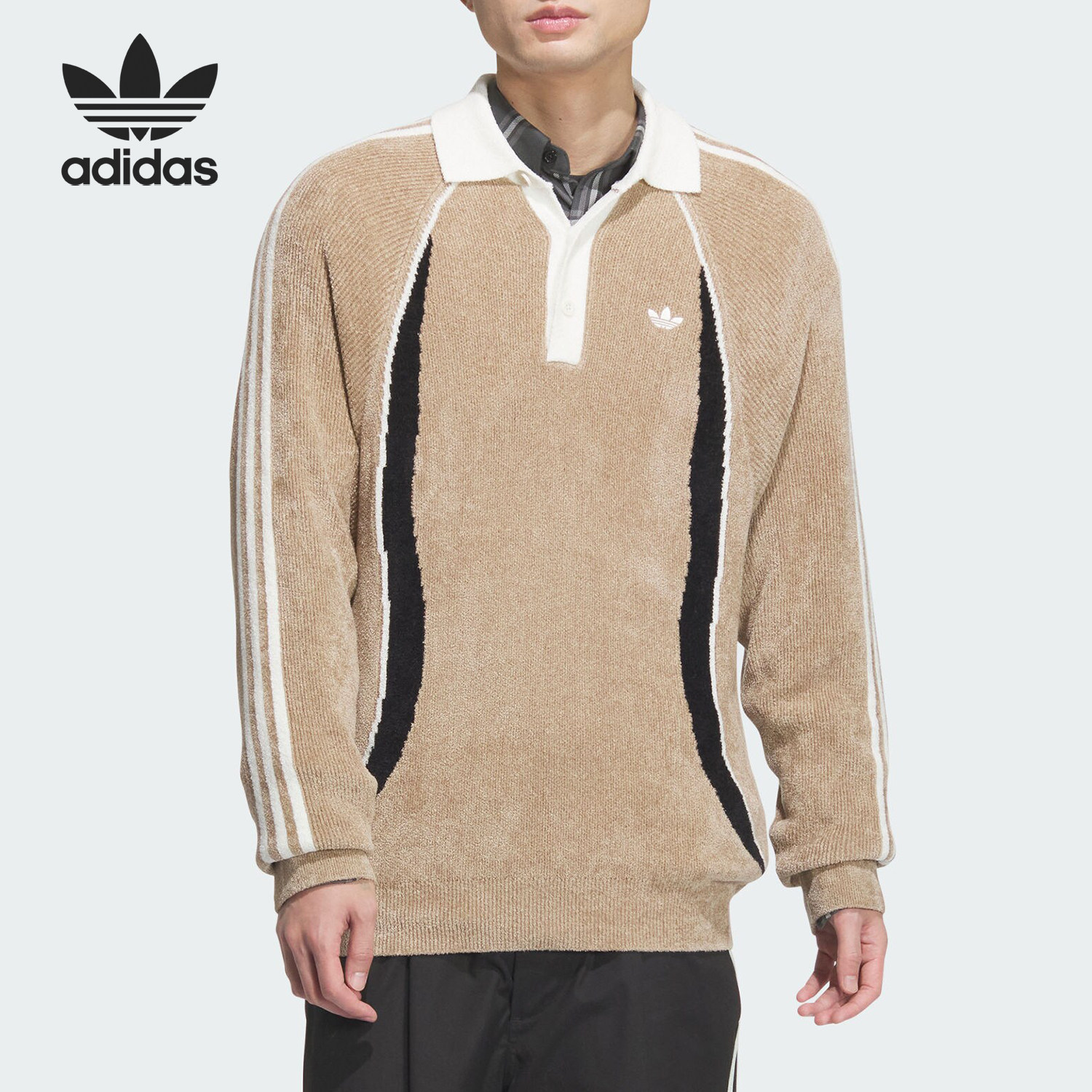 Adidas/阿迪達斯官方正品三葉草男士休閑拼接保暖翻領毛衣JN3794