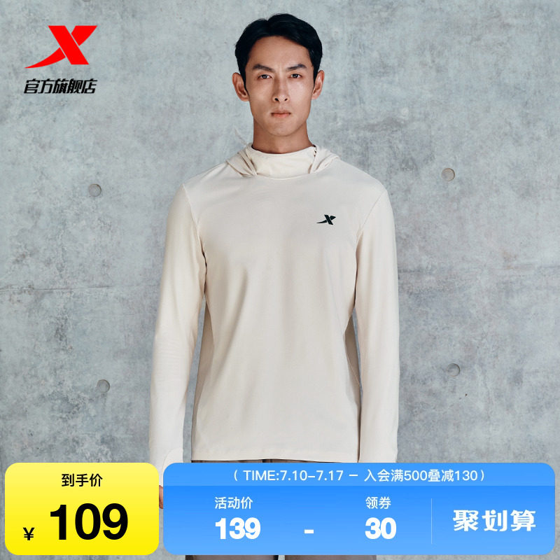 特步連帽長袖T恤男吸濕速干2025春秋官方訓練健身針織衫運動上衣