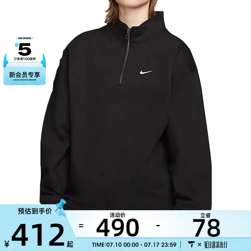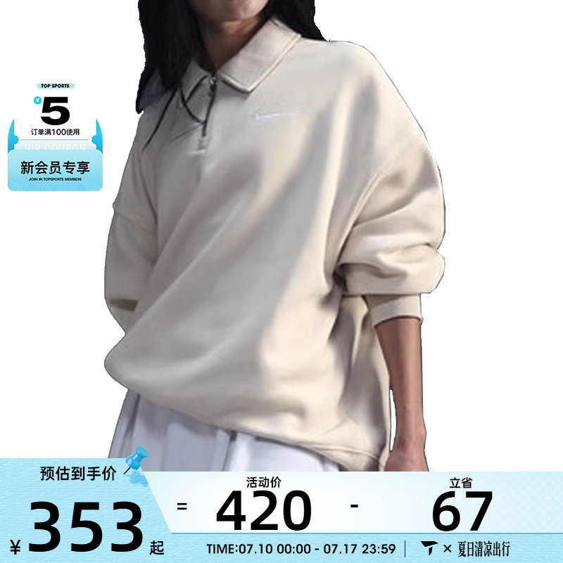 NIKE耐克女子AS W NSW PHNX FLC OS QZ PO運動套頭衫FZ3208-104