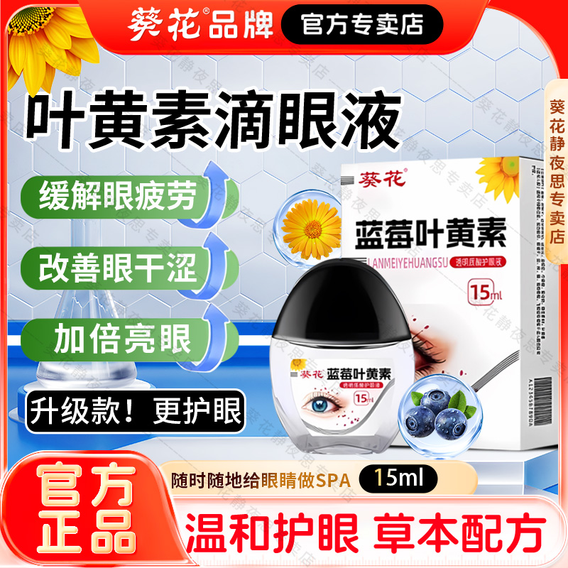 【抖音同款】葵花藍莓葉黃素滴眼液官方旗艦店正品黑蓋眼疲眼藥水