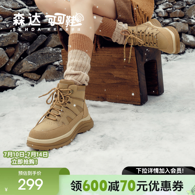 達人推薦森達爆款麥浪可可馬丁靴冬款商場防水休閑工裝短靴