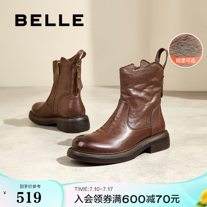 百麗女靴子復古時裝靴保暖加絨瘦瘦靴牛皮鞋真皮短靴B2361DZ4