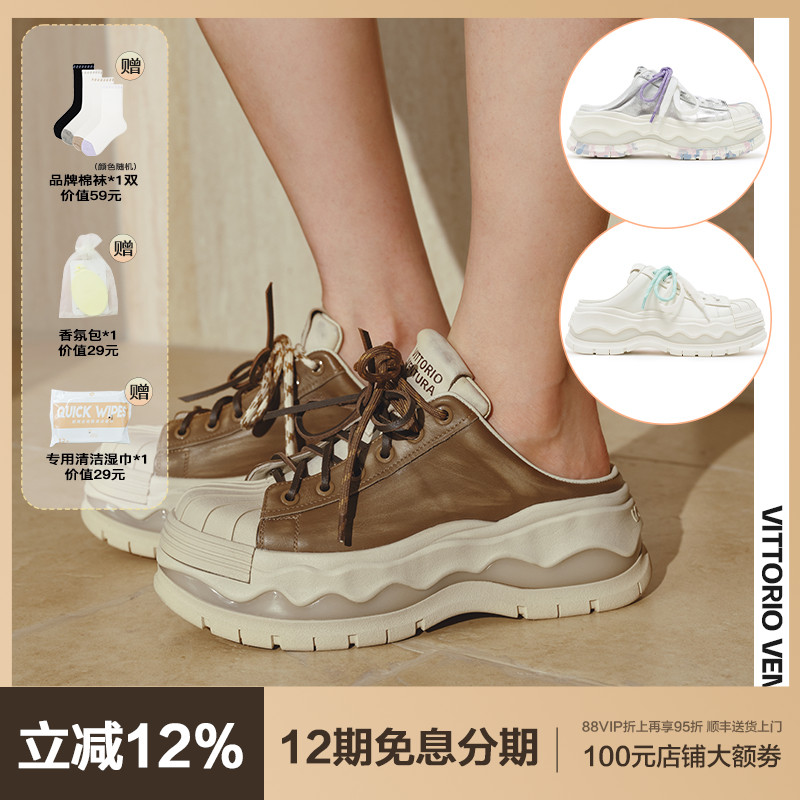 【孟子義同款】VITTORIOVENTURA薇薇燃 牛皮貝殼頭休閑拖鞋板鞋