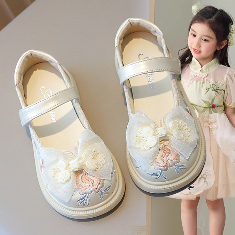 女童皮鞋2025新款國風童鞋漢服鞋子新中式女孩公主鞋蝴蝶結繡花鞋