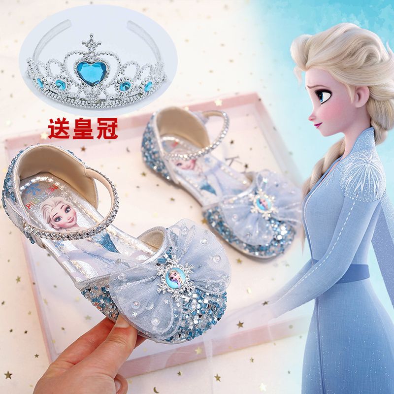女童公主鞋春秋愛莎冰雪奇緣水晶軟底寶寶小皮鞋洋氣艾莎兒童鞋子