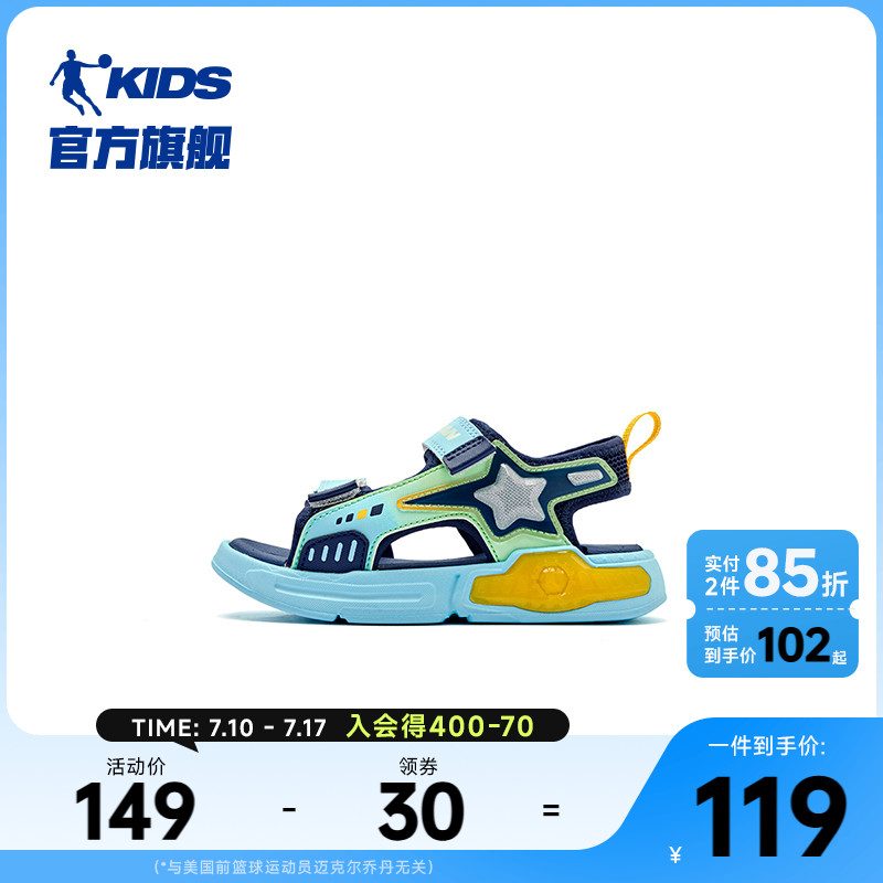 商場同款喬丹涼鞋兒童2025夏季款魔術貼露趾防蚊沙灘運動男童涼鞋