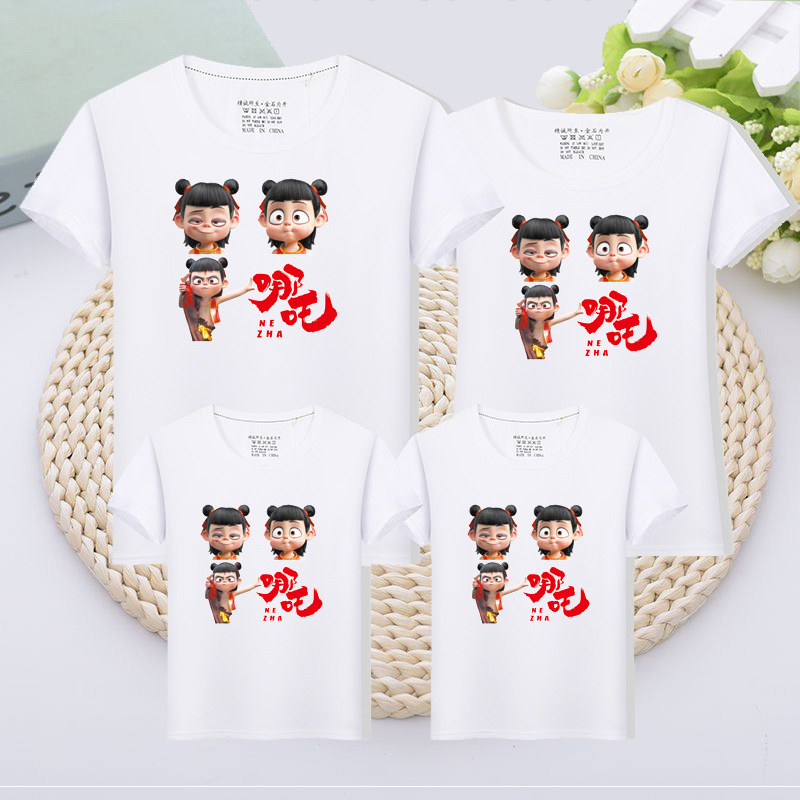 哪吒親子裝一家三口四口純棉短袖T恤衫母女母子全家裝半袖不一樣