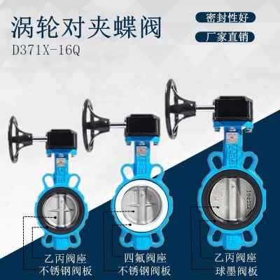 渦輪對夾式蝶閥D371X-10/16手動四氟橡膠乙丙蝸桿不銹鋼蝶閥DN50