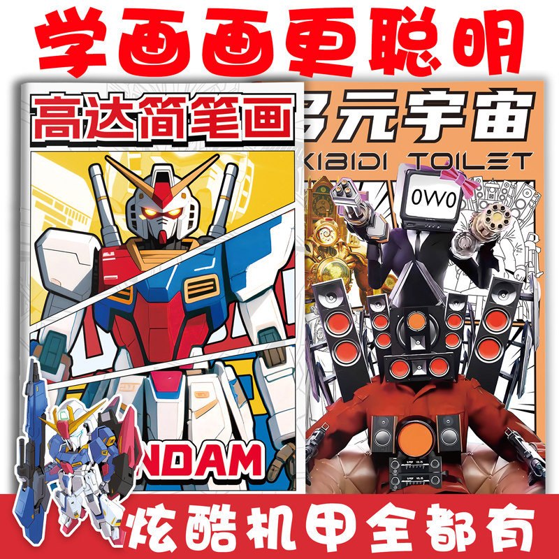 高達機甲元祖自由牛高達多元宇宙馬桶人時鐘王小學生兒童畫畫本