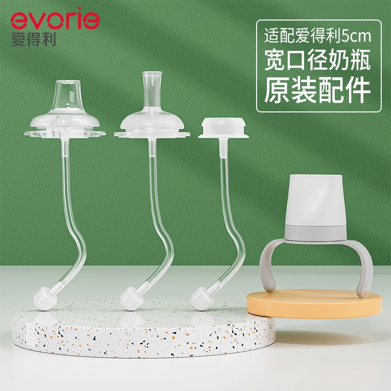 愛得利寬口徑奶瓶配件鴨嘴防嗆防脹氣吸嘴十字孔帶重力球吸管式