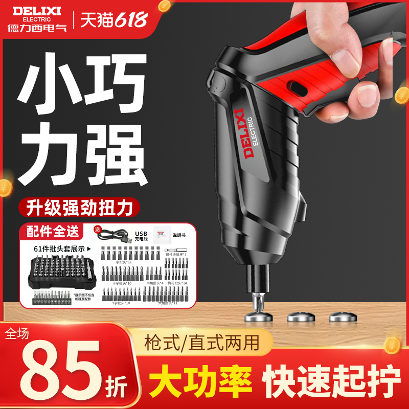 德力西電動螺絲刀充電槍式家用小型起子機多功能電批電鉆工具套裝