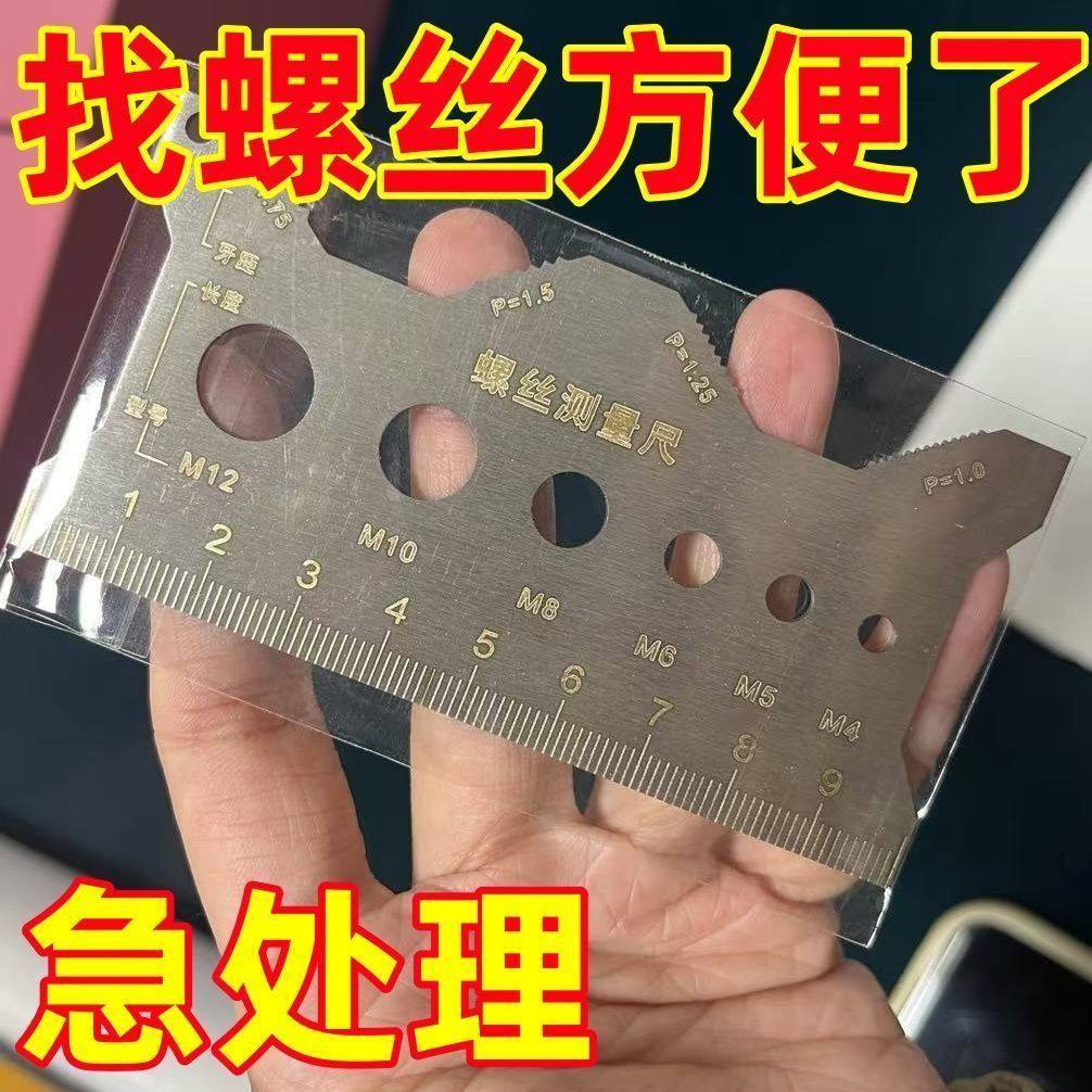 不銹鋼雙面腐刻螺絲測量卡尺長度直徑牙距螺紋規格工具螺距測量尺