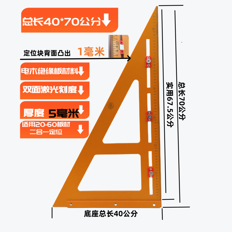 多功能二合一角尺木工三角尺T型拉手打孔定位丁字尺小角尺木工