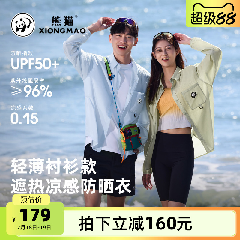 駱駝熊貓系列戶外防曬衣女襯衫夏季輕薄涼感透氣UPF50+情侶外套男