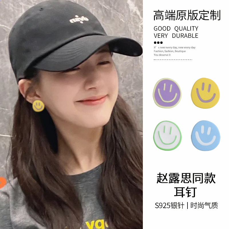 趙露思同款笑臉耳環夏季可愛不規則高級感撞色耳釘S925銀耳飾耳夾