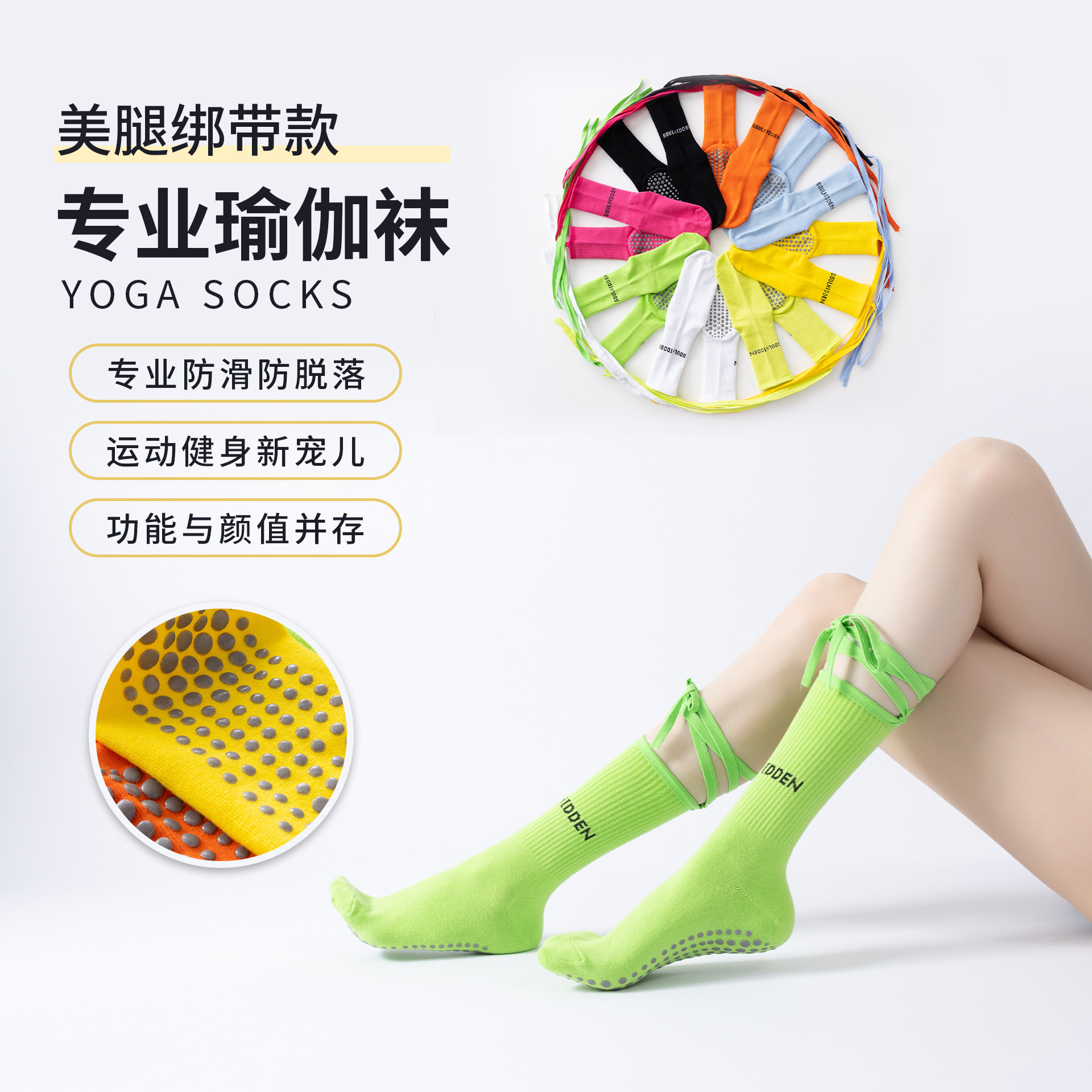 腳底防滑交叉綁帶瑜伽普拉提舞蹈多巴胺運動穿搭中長筒小腿襪子