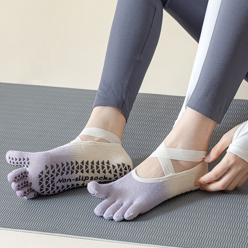 夏天新款點膠薄款漸變分趾瑜伽襪子女防滑專業健身五指襪普拉提襪
