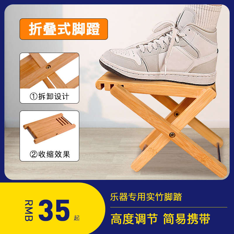 吉他腳凳實竹民謠古典吉他二胡琵琶樂器腳踏板折疊調節便攜式腳蹬