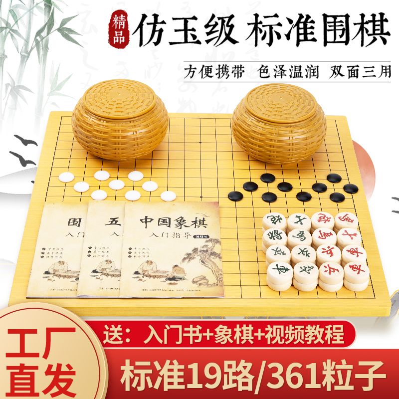 圍棋套裝五子棋象棋皮革雙面木棋盤兒童成人比賽專用仿玉棋子送書