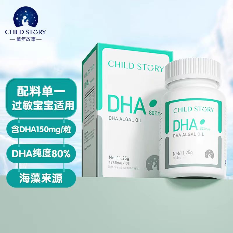 童年故事DHA藻油dha海藻油60%膠囊150mg加拿大進口正品60粒非魚油
