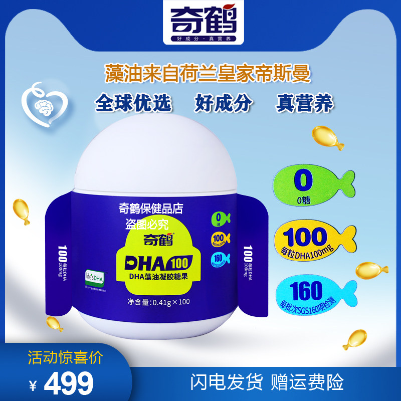 奇鶴dha藻油凝膠糖果膠囊滴劑 學生孕婦lifesDHA帝斯曼藻油 100粒