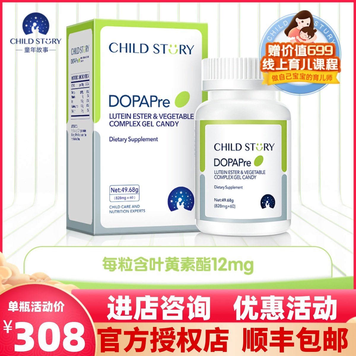 【官方正品】童年故事葉黃素酯dha藻油兒童成人dha加拿大進口