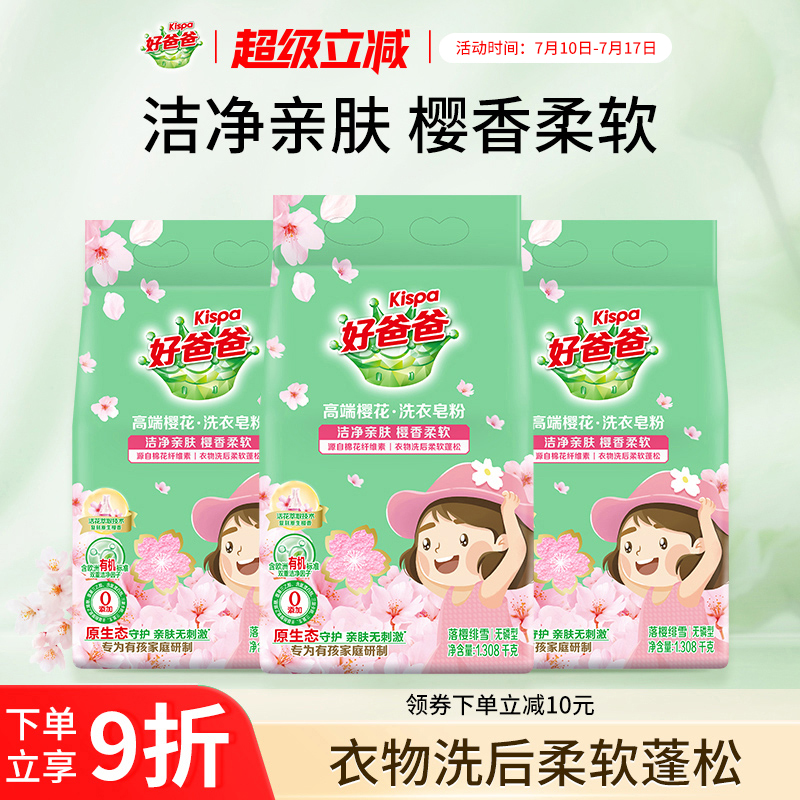 好爸爸櫻花洗衣皂粉護衣護色去污漬嬰兒童寶寶貼身衣物3袋7.84斤