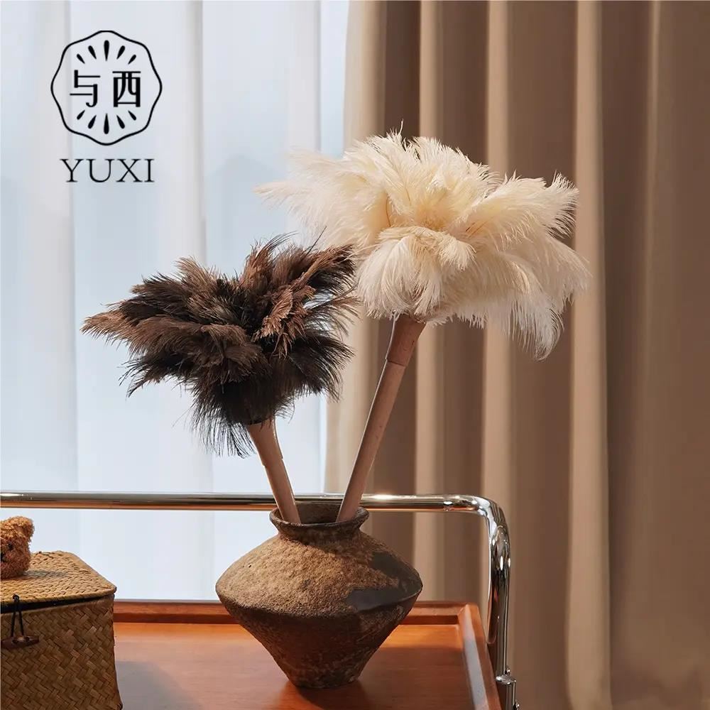 孔雀翎鴕鳥羽毛紫竹根雞毛撣子茶室桌面掃灰塵清潔佛塵神器除塵撣