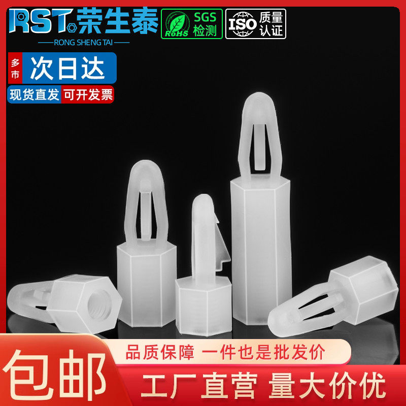 扣式六角尼龍柱PC板間隔柱飛機頭塑料隔離柱插銷推入式墊高柱M3M4