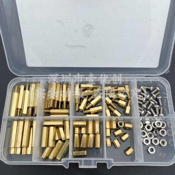 120個盒裝M3不銹鋼螺絲螺母黃銅六角銅柱隔離柱間隔柱組合