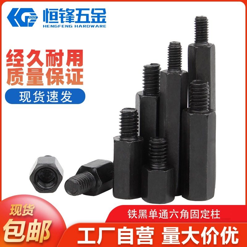 鐵黑單頭六角螺柱M3銅柱隔離柱機箱連接柱支撐柱單通六角螺絲柱M4