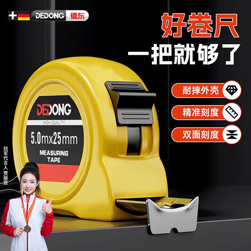 德東卷尺鋼卷尺家用加厚加硬測量5米防摔尺子盒尺米尺高精度工具