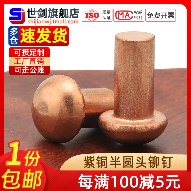 國標純紫銅全銅敲擊式實心圓頭鉚釘半圓頭元帽銅釘M2M3M4M5M6M8mm