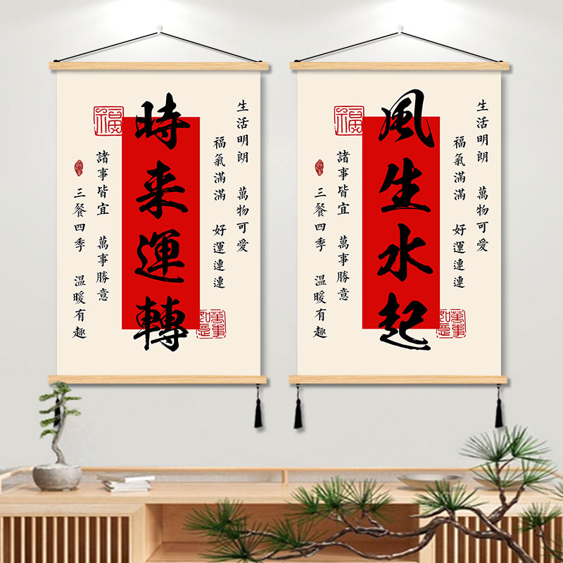 時來運轉掛畫風生水起生意興隆臥室客廳店鋪墻壁裝飾新中式掛軸畫