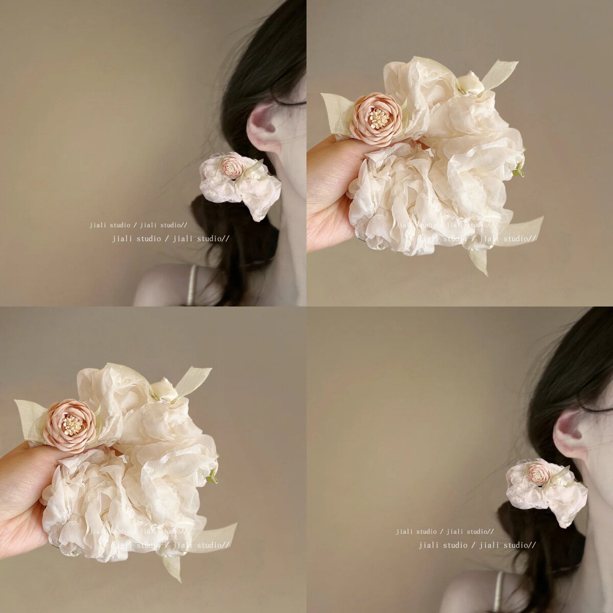 山茶佳人!韓系甜美網紗大腸發圈小清新溫柔綁發頭繩超仙高級感女