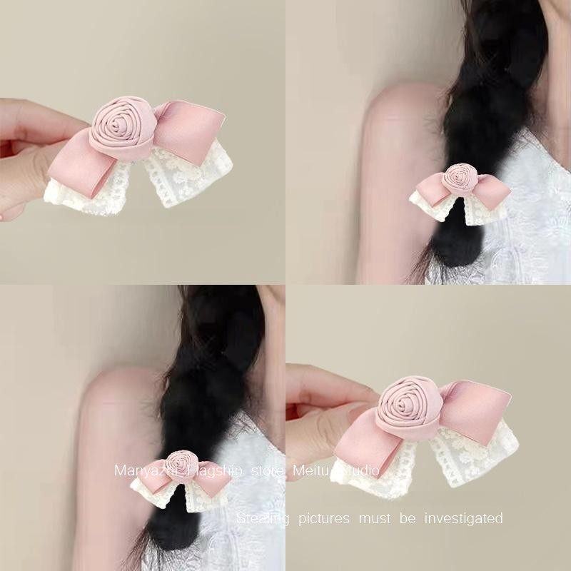 甜心芙蓉!粉色山茶花朵蝴蝶結發夾!溫柔后腦勺發卡蝴蝶結夾子女
