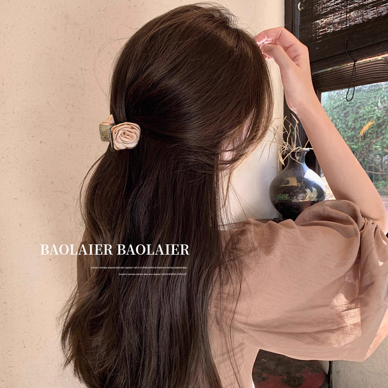 山茶花半扎發發夾女2025新款高級感后腦勺玫瑰花抓夾花朵夾子頭飾