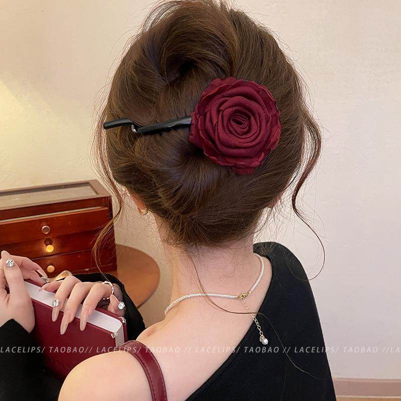 干枯玫瑰扭扭夾后腦勺盤發抓夾一字夾頭飾鯊魚夾安全替代品發夾春