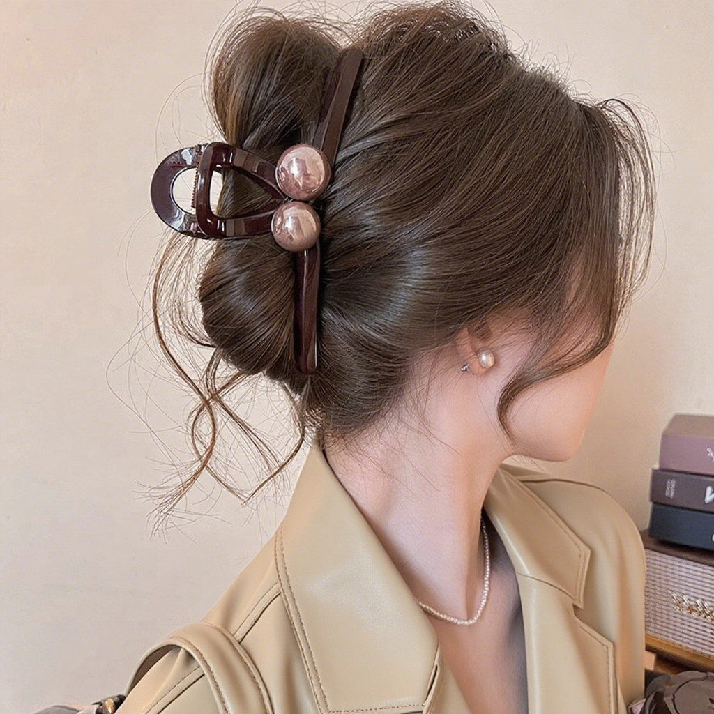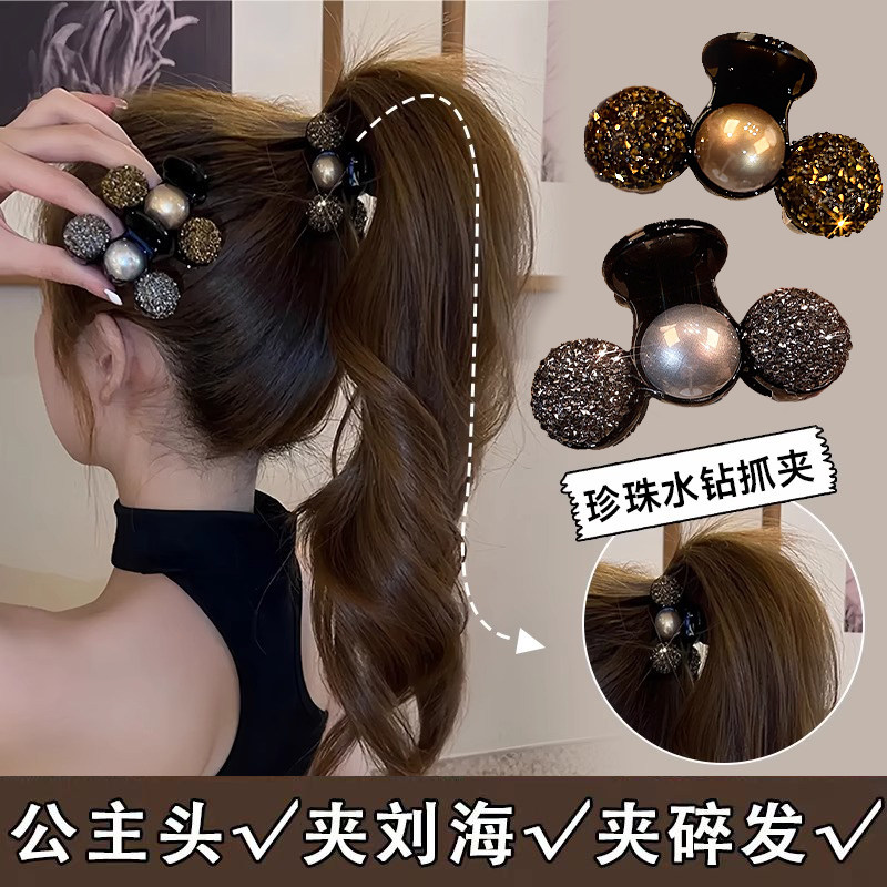韓版氣質珍珠丸子頭抓夾感發夾