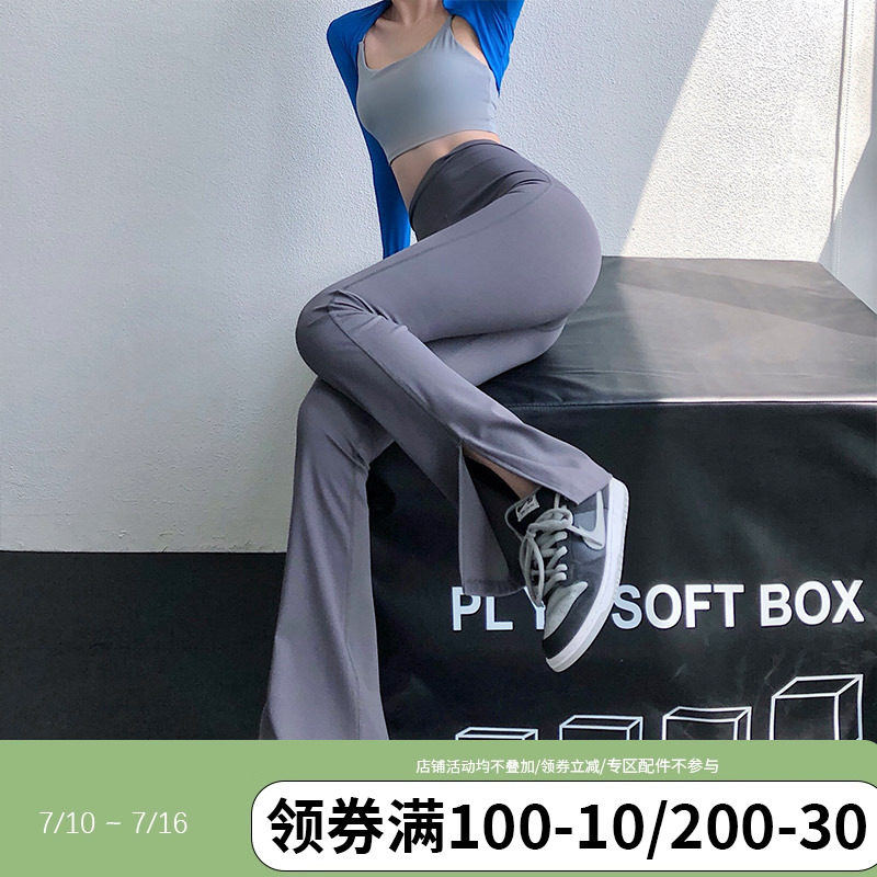 annerun裸感瑜伽健身褲女高腰提臀外穿高彈力顯瘦顯高舞蹈微喇褲