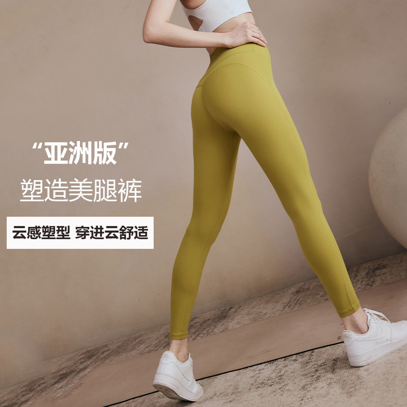 防卷邊鎖腰瑜伽健身蜜桃褲高腰收腹提臀外穿裸感親膚美腿夏薄