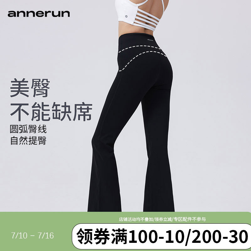 annerun舞蹈高彈微喇褲女運動外穿顯瘦健身褲速干跑步裸感喇叭褲