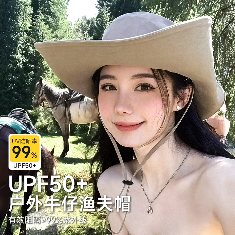 夏季漁夫帽女戶外防曬防紫外線露營登山防風高顏值男大帽檐遮陽帽