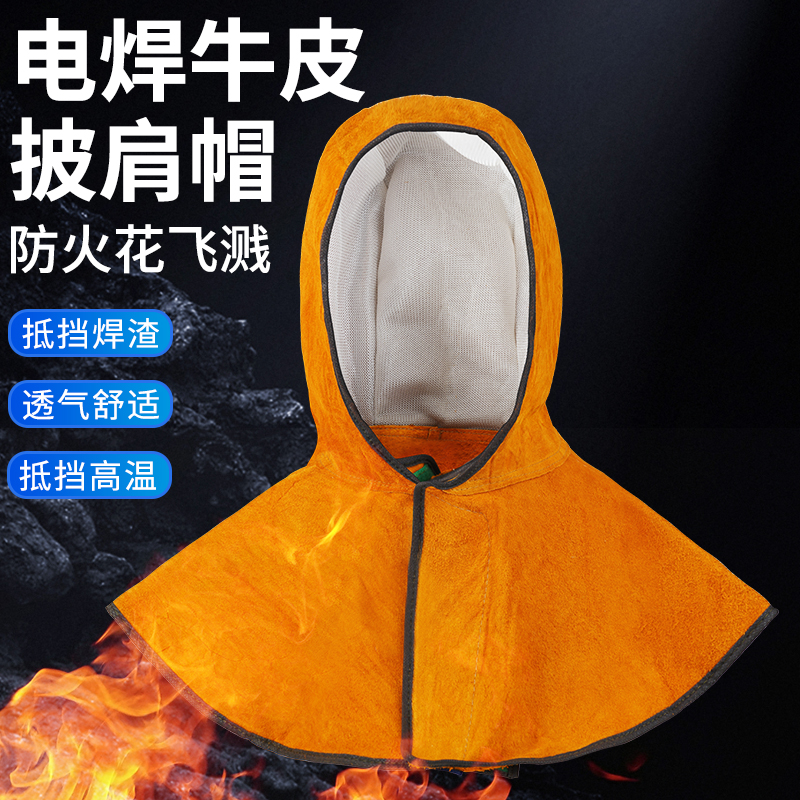 牛皮披肩帽電焊防火花飛濺燒焊工風帽焊接防燙防護帽搬運工保護帽