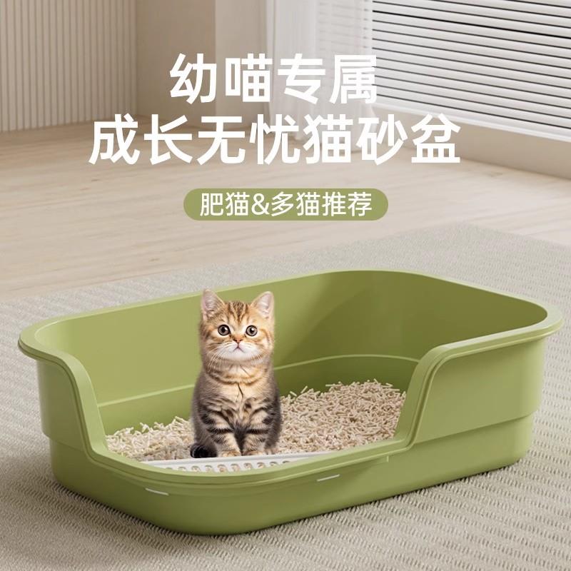 貓砂盆幼貓專用小號防外濺低入口貓廁所半封閉開放式防臭矮貓沙盆
