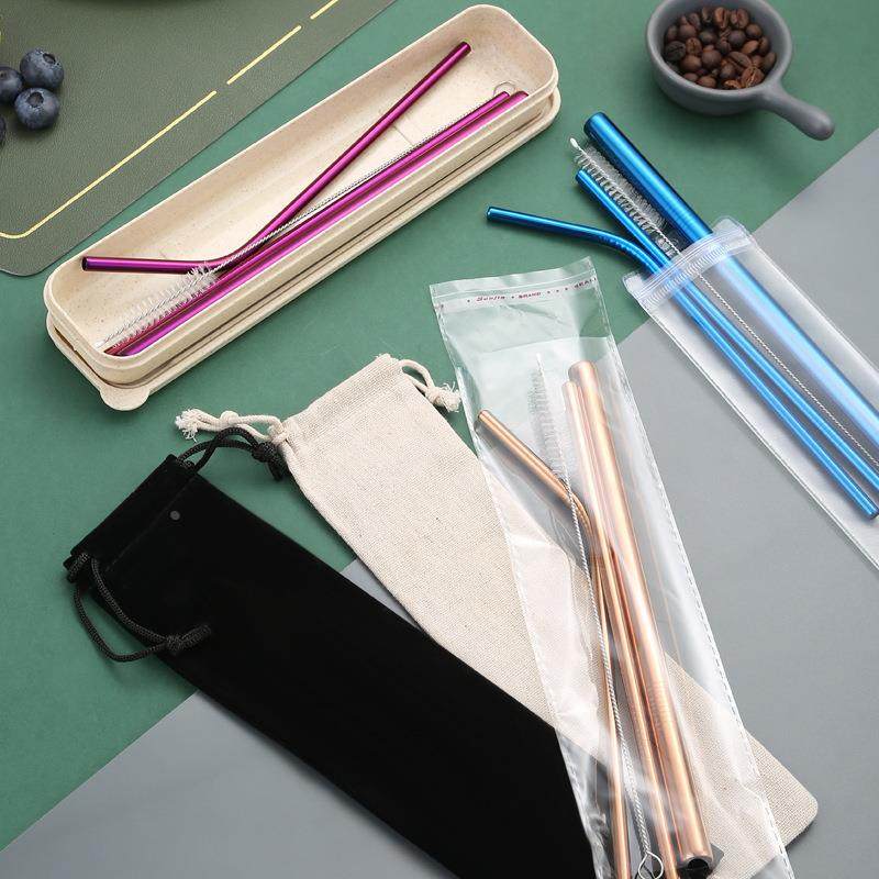不銹鋼吸管便攜套裝創意彩色奶茶飲料吸管金屬直彎管定制